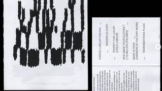Toutes mes écharpes portent des textes de lutte contre la fast-fashion que j’ai réfléchis, avec mon savoir-faire de designer typographe, pour avoir un double usage : ils questionnent le lecteur lorsque l’écharpe est brandie et deviennent des motifs abstraits lorsqu’elle est portée.