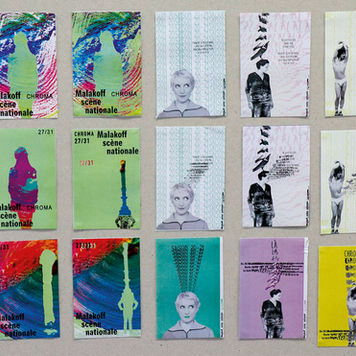 « À partir de ces recherches nous avons imaginé à des systèmes qui pourraient incarner l'identité de la Scène nationale, en pensant en parallèle les affiches de spectacle et l’affiche de saison. » [projet en cours]