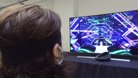 Premier concept des chaussures d'exploration en tant que contrôleur: un capteur placé dans les chaussures envoie des données permettant de modifier en temps réel le terrain du jeu, Maison Gamma, Gamma 30021.