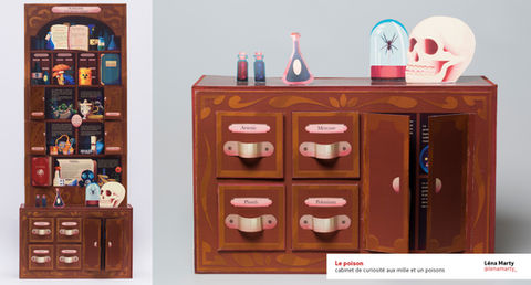 La visite du Musée Fragonard à Maisons-Alfort a conduit les étudiant·e·s à imaginer un cabinet de curiosités réunissant des objets observés sur place combinés avec d’autres, étranges ou imaginaires, dessinant en creux la personnalité d’un collectionneur.